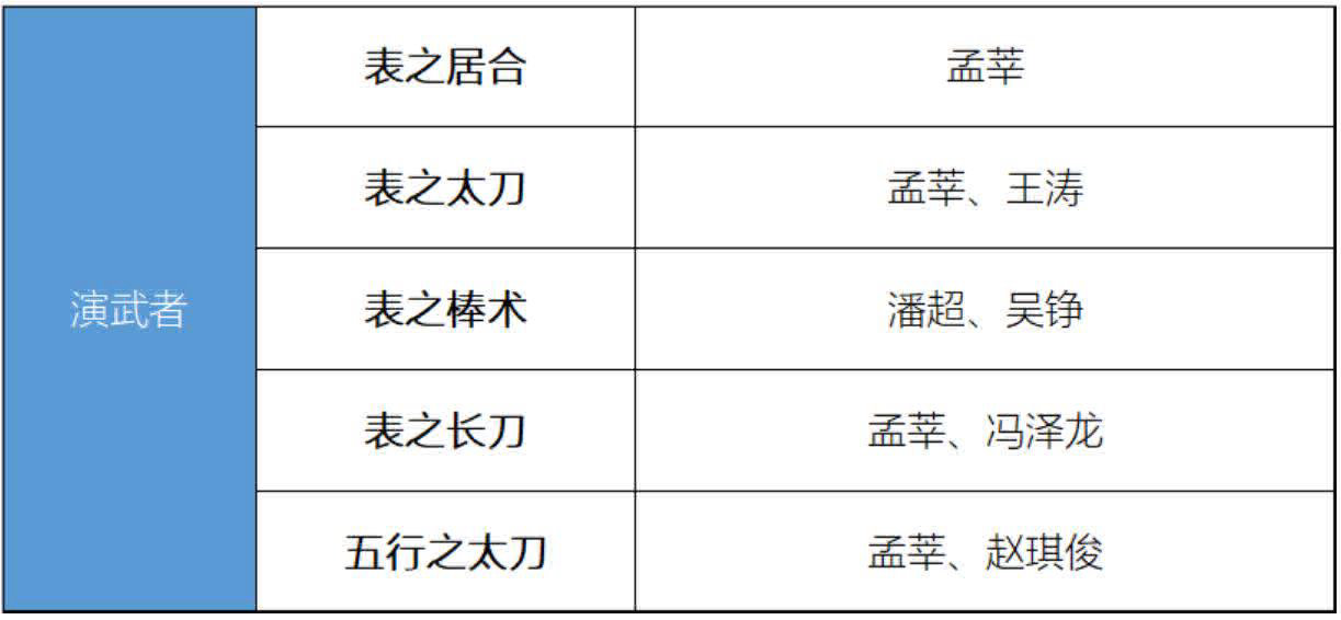 演武者名单如下
